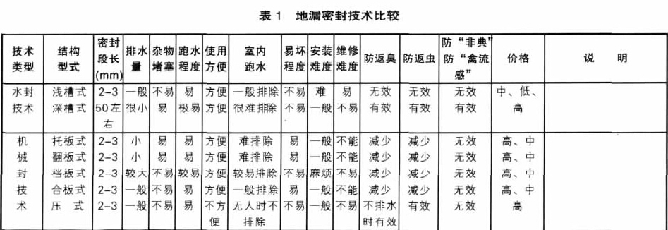 5地漏3種密封技術(shù)比較